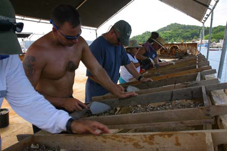 Sifting on the JPAC barge over Nelson Corsair February 2004.