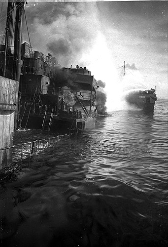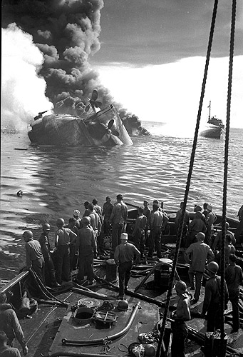 to photograph the rescue effort from the deck. His 37 black-and-white