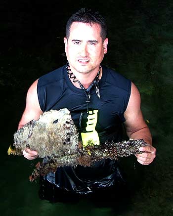 - First finds, interviews First, a couple of points about omissions from a couple of previous reports: In the Tabecheding-river-wading report (#18), since I was one of the people flailing around in the water, I completely glossed over the fact that Laura was the only team member with enough sense to follow the river from up in the jungle. She stayed relatively dry. Soaked from crawling through the jungle, but at least her boots didn't squish when she walked. She definitely gets credit for being smart enough to stay out of the river. Although getting dunked repeatedly was kind of fun... Also, she and Grover made their first independent finds of genuine aircraft chunks near the big cave where Grover also first discovered the bones, and I failed to acknowledge those rites of passage. Here's proof: