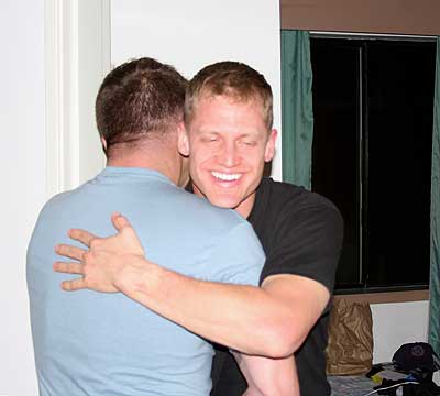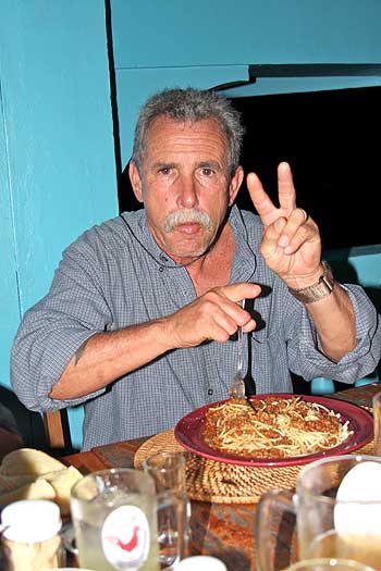 A few minutes in the back room with the manager and a computer and all was worked out. As I write this, we already know that Rick made it back in record time and is home in Seattle. Back to town and the Wetting Down for Warren. A Navy and Marine tradition is for the newly promoted to spend their hard earned promotion money on their friends. So, it was out to Kraemer's and the All You Can Eat Spaghetti Night. Mike decided to challenge the house. Before I had taken my second bite of pasta, Mike was on to his second plate.