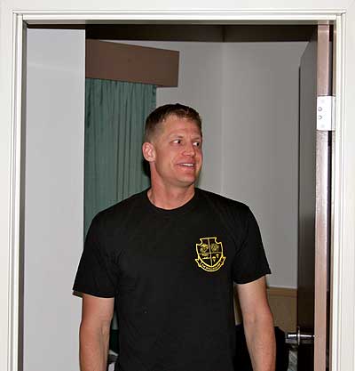 But it was not to be. Whether he peaked too early, expended too much gusto, or just bit off more than he could chew, Mike could not best Mark Swank’s record, or earn a free meal from the house. We suspect the house was stacking the deck as the second plate had lots more meat sauce on it than the first plate. But no matter. Then Jack (our Marine Sonic adult supervision) said he wanted to go to the airport early for his 0125 departure. If you leave on Continental Airlines, you leave either at 0125, or 0235 in the morning. Why anyone would want to go to the airport early is beyond comprehension. Unless you are part of a conspiracy. What I’ve left out of the story is Major Derek Abbey, USMC, a BentProp alumnus and Warren’s best friend, was supposed to officiate Warren’s promotion ceremony. We had been working on this surprise for a couple of months. There were a lot of moving parts that had to fall into place, but it looked like it was going to happen: a hotel room in another hotel, a helicopter ride to Peleliu, etc, etc. Until his airline flight out of LAX got delayed. The connecting flight in Honolulu held for him but the Guam flight to Palau left without him. We waited for him at the Palau airport last night until the immigration officers went home. That’s where we ran into Tangie. Tangie also can keep a secret. We decided too many people were involved here to delay the ceremony another day, So we would just surprise Warren with Derek whenever we could. We let Warren go to bed and then after we brought Derek to the hotel, woke him up with this non-sequitur: “Warren, wake up. We have a problem. We have to go to Bem Ermii for a milkshake.”