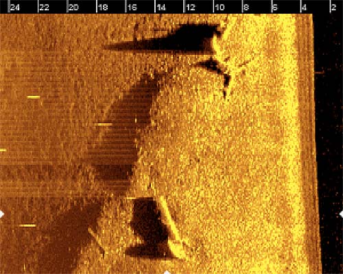 A few years ago we did see a SSS return in the same area, but not very well defined, just bright. So we labeled it and said we'd get to it some day. The students lowered their vehicle into the water and away they went. They had full control today. In past missions, the students really had to work on manufacturing and maintenance. Now it's maintenance and pilotage. That they have an operational vehicle makes life so much easier, and less frustrating for everyone.