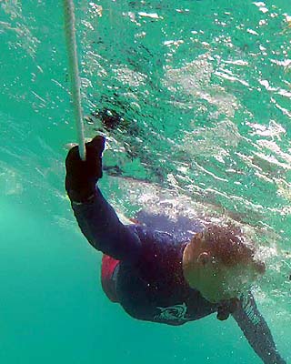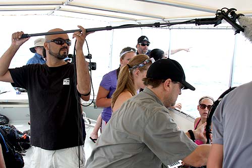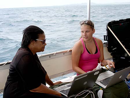 The students had control problems the last time they went out. They could drive the vehicle forward, but it would sink to the bottom. They could keep it off the bottom, but not go anywhere. Like a Star Trek episode, they need more power. But that won't happen out here. So, overnight, they worked the problem out with what they had available, working with buoyancy control, styrofoam, duct tape and "micro changes in air density." We were supposed to push off from the dock at 0900, but the bot still needed work. So the ROV team decided to take their time and called off the morning deployment. They would depart from the dock when their VIP visitor showed up. In the meantime, they sent us out to set a buoy on the target so we didn't waste their time out on the water. Smart thinking. Today, the ROV worked perfectly. Up, down, left, right, forward and backward. It works. Good thing, too, as the U.S. Ambassador to Palau was onboard to meet this year's team and see Dingar in action. The team met Ambassador Reed-Rowe last year and she expressed interest in meeting up with the team again this year. She is pretty jazzed about what this group of students has been able to accomplish and that they share their information and enthusiasm with the people of Palau.