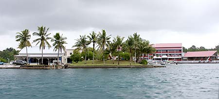 After the presentation was over, we departed Sam's and Derek picked Taj for his last meal in Palau this year. Well not really his last dinner here. The Stockbridge group picked Carp for the last meal and invited us to join them on Tuesday night. So tonight, it was Derek's choice. And a fine meal it was. Back to the house and the day was over. Tomorrow is Stockbridge's last day as well as Derek's. Our team will go from 18 to five overnight. - Flip Colmer |