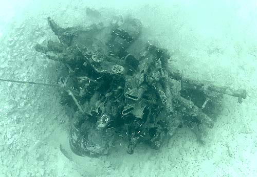 We dropped Billy back at his farm, then we headed back to Neco to pick up Vice President Bells and his entourage. He had with him his Executive Assistant Jennifer and two members of the Ministry of Justice, Bren and Perry. This was Perry's second day in Palau as a contract attorney from the U.S. Plus Sunny from BAC could not join us so Sylvia was our escort to the protected Corsair site. Off we went and it took a bit longer than usual to get there. The water was quite rough. The winds had picked up out of the north. So after a choppy ride out to the Corsair, the VP and staff jumped in, looked around for a bit, then jumped back in. We headed back. Not the best day out on the water but they did get to see a really great wreck site. After returning to port, we called it a day. Out to the Filipino Bakery for dinner and early to bed for all. Well that was the plan. I stayed up late looking at aircraft recognition materials for the site we worked today. Finally turned out the light after midnight. Good thing our first appointment isn't until 1045 tomorrow. - Flip Colmer |