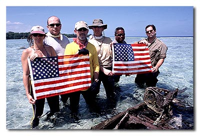 Under the instruction of our team archeologist, Dr. Bill Belcher, we walked from the boat into the cove and carefully searched the area. No evidence of remains could be found and we noticed that since the cove faced the channel, the body at some point could have floated or been washed out to sea. As to the veracity of this Palauan gentleman, I found his recollections to be amazingly consistent with the after action report from the 307th BG (H). For example, he remembered the bombers� simultaneous arrival from the north and south directions, only a few days before the Peleliu invasion � review of the 307th BG(H) records indicates that on 01 September 44 (and by my review, only on that day during this August September 1944 campaign) the B-24s split into two groups over Palau, one approaching Koror from the south, the other from the north. The Peleliu invasion occurred on 15 September 44.