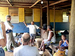 Koror Elder Lady: the team visited this remarkable woman again during P-MAN V. She had been instrumental in 2001 in guiding the CILHI and the P-MAN III teams to the one probable execution site in Ngatpang State. She confirmed her belief to the P-MAN V team that that site was the execution site. (NOTE: War Crimes Trials records after WWII provide testimony that this execution did occur, that the bodies of the three airman and priests/missionary families were buried in a common grave, and that near the end of the war, their remains were exhumed, cremated and reburied "nearby" to hide the evidence. It is this second site that CILHI believes it located in 2001.)