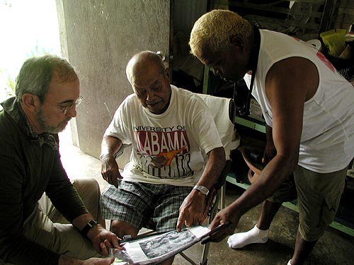 VIII Update #3 Our first stop this morning was in the village of Ngatpang, where we paid a return visit to a respected chief whom we also interviewed last year. We wanted to clear up some points, and to share with him some photographs that we'd accumulated since we last talked with him. His area of expertise is the place we've been calling "Police Hill," which is near the location of the Japanese military police headquarters where several U.S. airmen, probably three Navy UDT members, and several priests and Palauan civilians were executed and buried.
