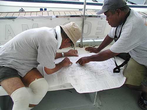 VIII Update #27 This morning we picked up an elderly gentleman whom we interviewed last year. He's the one who told us that in 1944, he removed the machine gun from an aircraft in shallow water in Aimeliik - ostensibly to get some parts for his air rifle (turns out none of the parts from an Avenger's .50-cal machine gun were usable on his air rifle...).