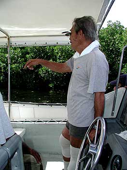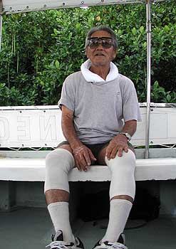 He had agreed a few weeks ago to accompany us to the area where the wreckage had been (he believes that his mechanical exploit occurred in late 1944). We've suspected that the aircraft he was talking about was the same one from which we found a wing in the mangroves last year, but taking him there was the only way to really confirm this. Before we headed out, we reviewed some of our recently acquired Japanese maps with him, to see if he could shed any light on the problem we've been having with bridge names, and to tell us if he remembers the school near T-Dock where a U.S. airman was said to have gotten his parachute tangled.