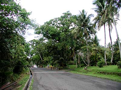 We've decided that if we come back here next year, it will be at a time when the slack tide is very low, and we'll sweep the area with the metal detector. After dropping Singeo back at home, we went into town to explore the area around the old school near T-Dock. Right out in front of the new supermarket, which was built on the site of the old school, is a huge old Palauan mango tree. We speculated that this might be the tree into which an American aviator parachuted.